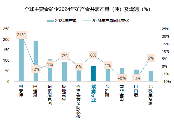 观点认为,近年来,全球地缘冲突延宕升级,矿业市场风云变幻,紫金矿业股价连续6年实现年度正收益,2024年末市值位居全球金属矿业第4位,表明其聚焦矿业主业的长期主义和“逆周期布局,顺周期产出”资源策略,经受住了严峻复杂形势的冲击,凸显出强大的发展韧劲和穿越周期能力。